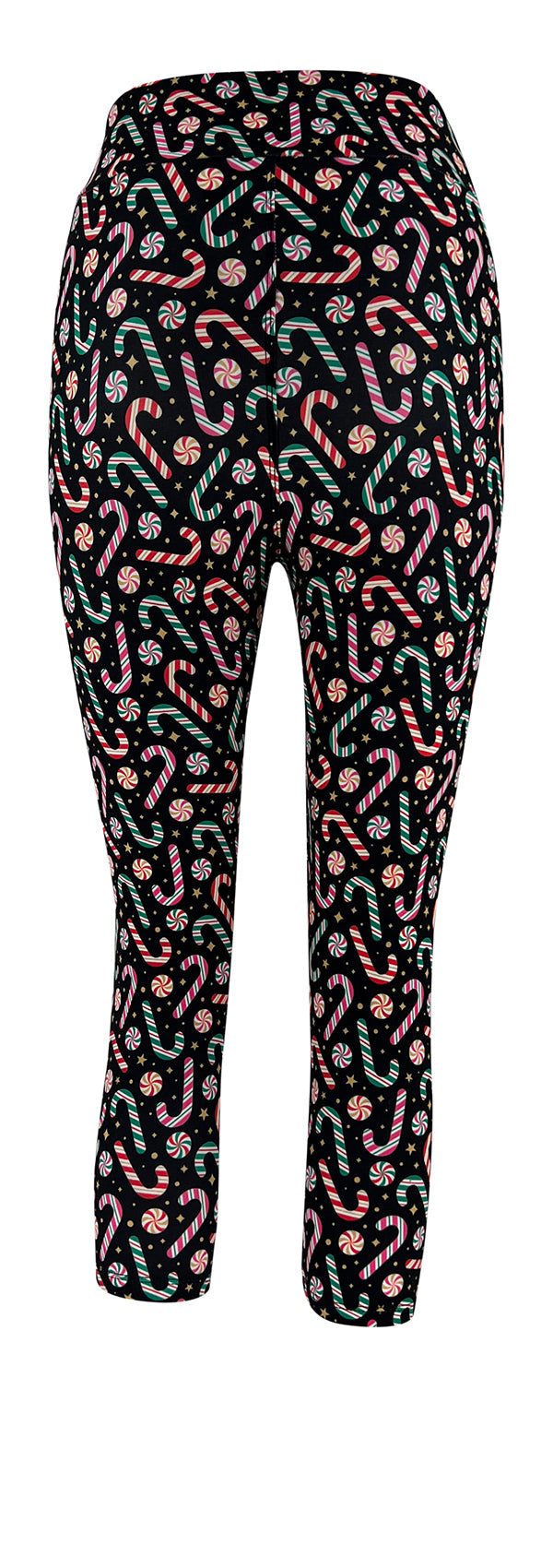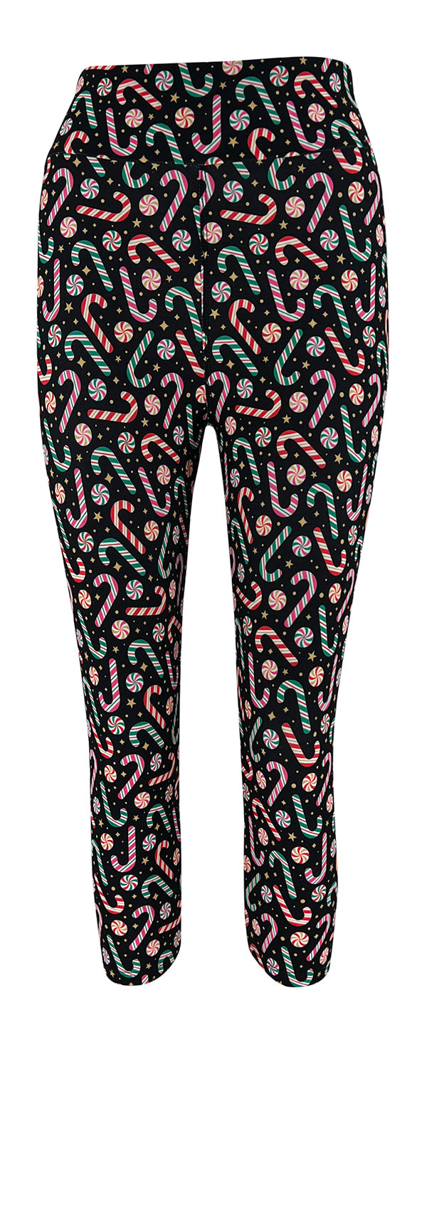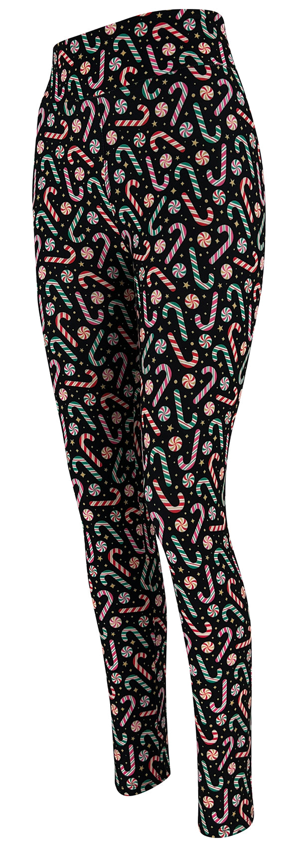 Get your sugar fix with our Candy Christmas Leggings! Made with super soft, stretchy fabric, this playful pattern of swirling red and white candy canes, paired with bright festive sprinkles, is a sweet treat for your wardrobe.