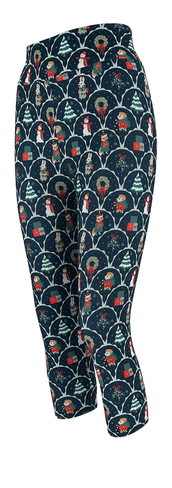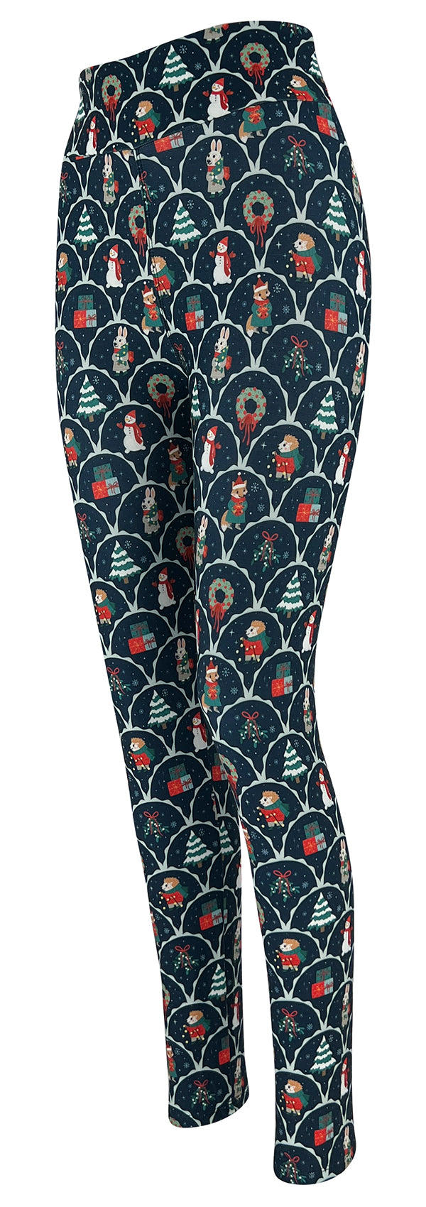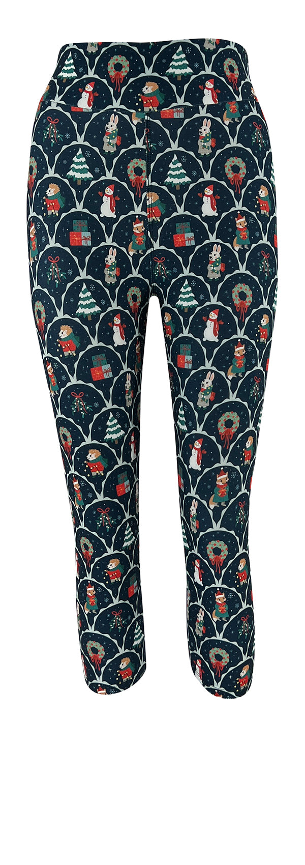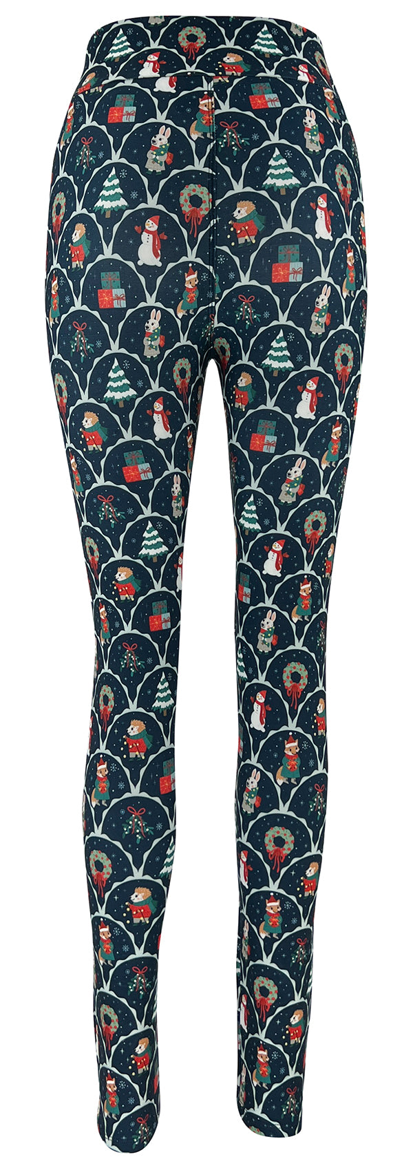 Tell your own winter tale in our Snowy Stories Leggings! This unique print features snowmen and wreaths on a navy base.