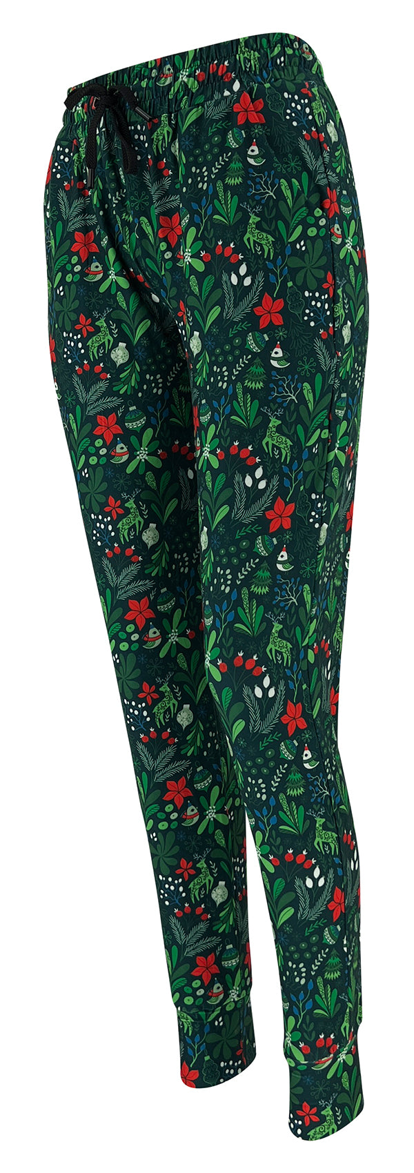 Our Winterberry Woods Joggers feature this deep floral print with red berries on a super-stretchy fabric for ultimate comfort.