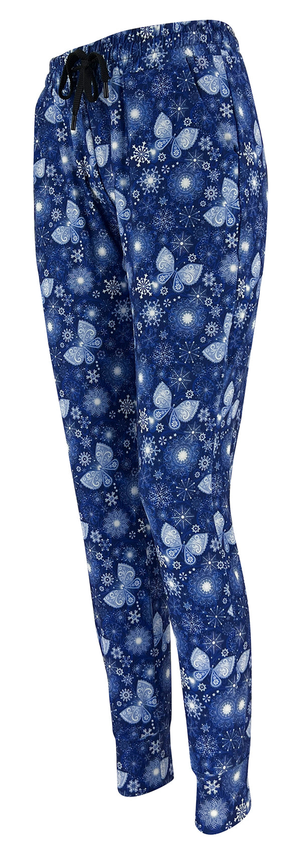 Settle in for the season with our ultra-comfy Butterfly Sparkle Joggers! Featuring a shimmering blue butterfly and snowflake pattern on a super-stretchy fabric, these joggers offer a relaxed, cosy fit and ultimate comfort for all your casual holiday lounging and errands.