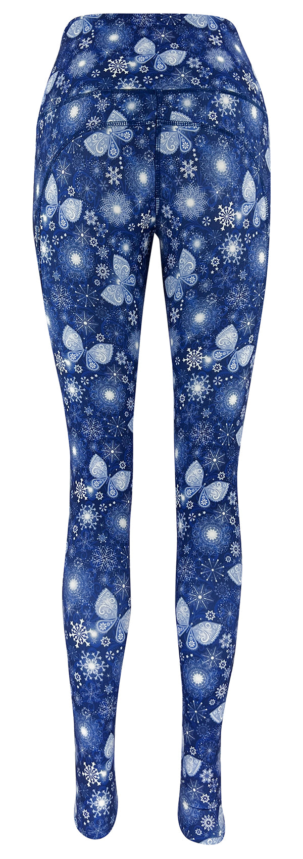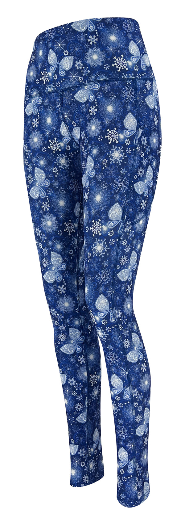 Unfold a bit of winter magic with our Butterfly Sparkle Pocket Leggings. Made from our signature stretchy fabric, this super soft pair features a vibrant pattern of shimmering blue butterflies and delicate snowflakes.