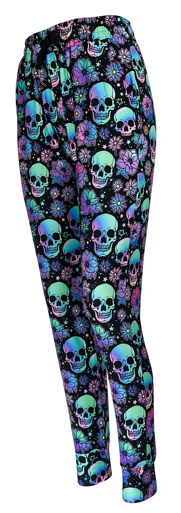 Bring some edge to your wardrobe with the Skulls Joggers featuring a colourful skull print that pops with personality. Made from super soft fabric, they deliver a smooth comfortable fit that feels as good as it looks.