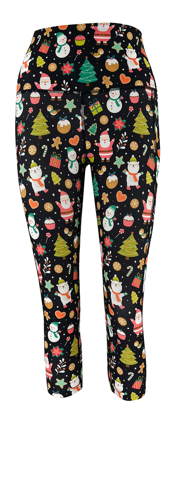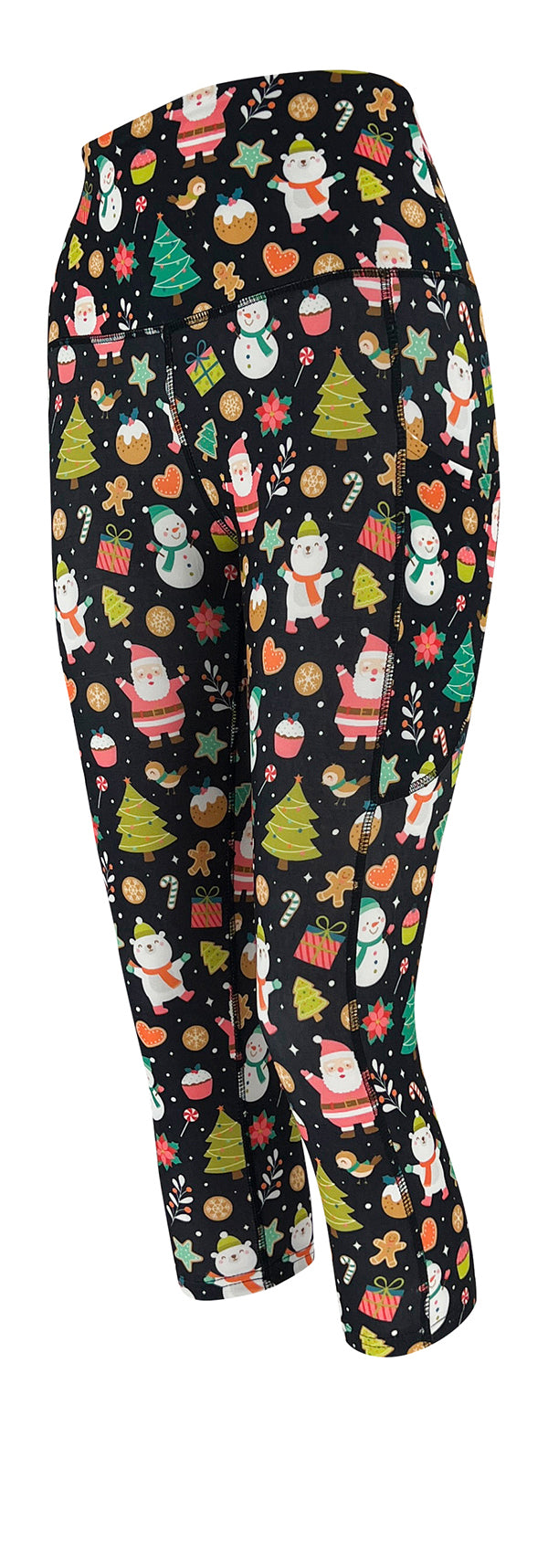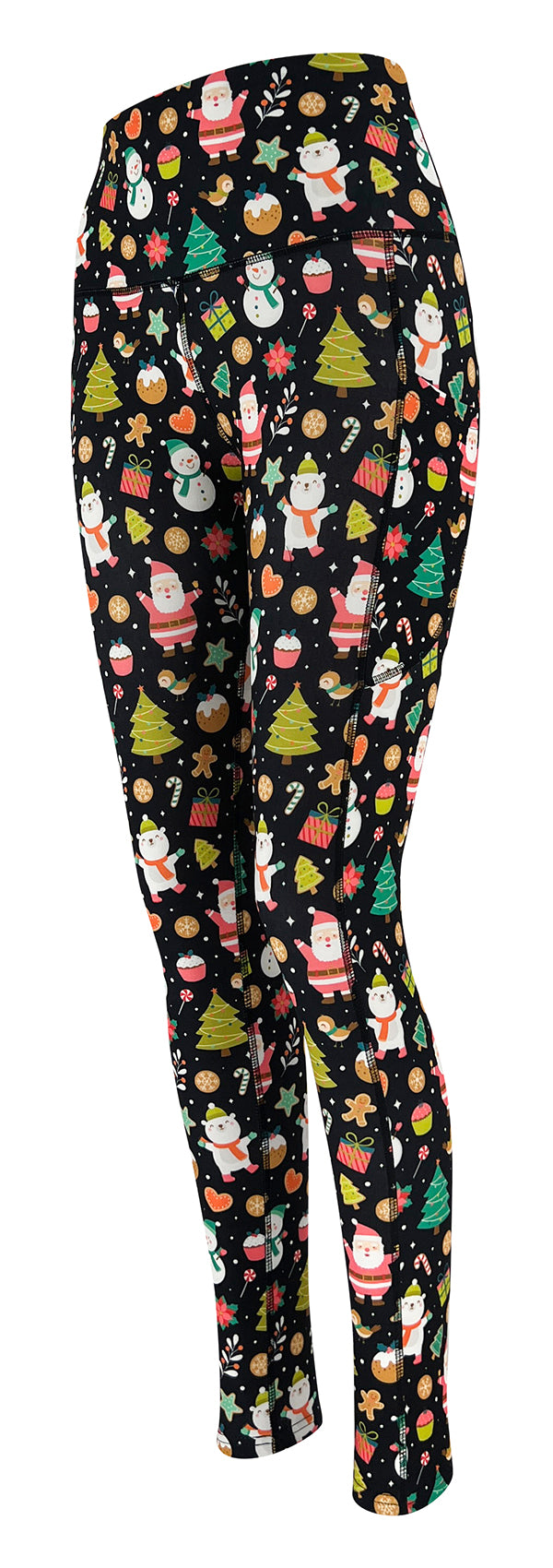 Enter a festive world with our Santa's Wonderland Pocket Leggings! This cheerful print is on supportive stretchy fabric for comfort.