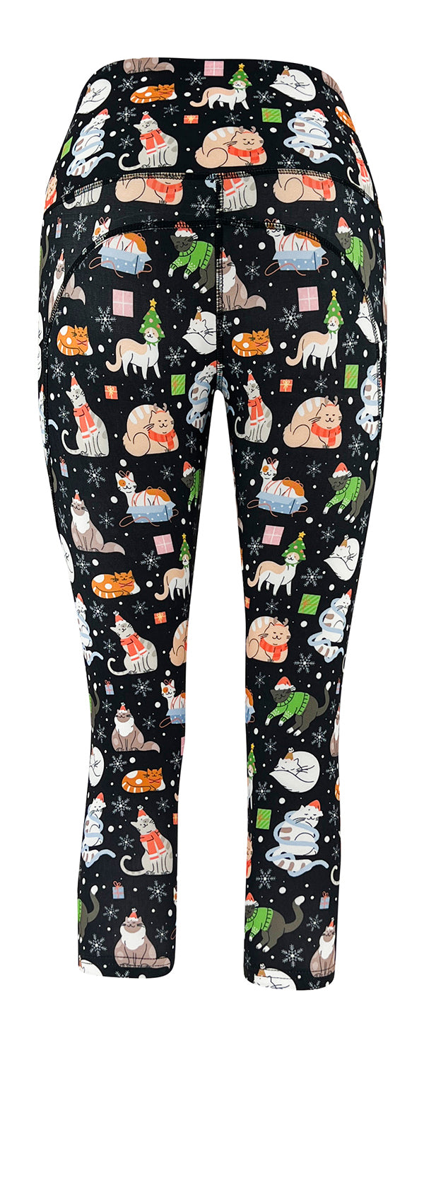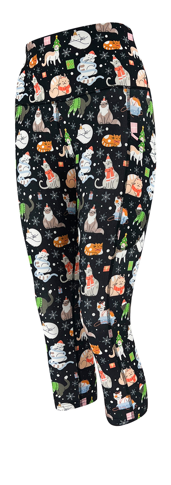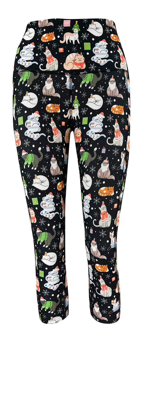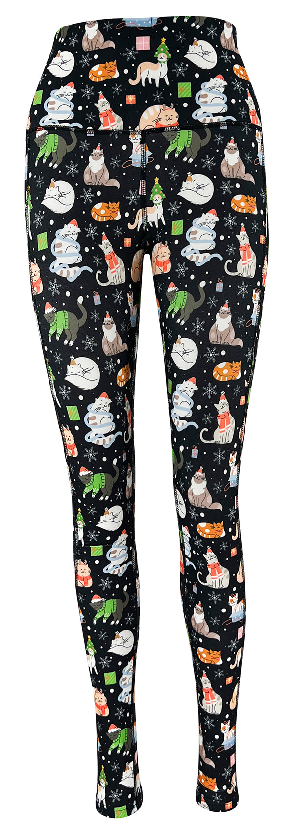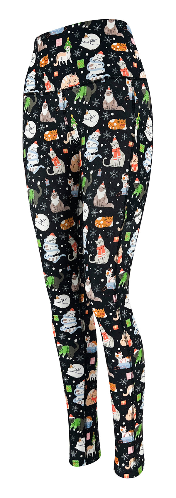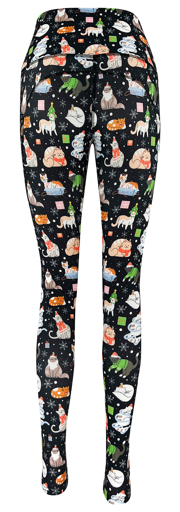 Purr-fect for the holidays! Our Winter Whiskers Pocket Leggings feature the sweet festive cat print on supportive stretchy fabric.